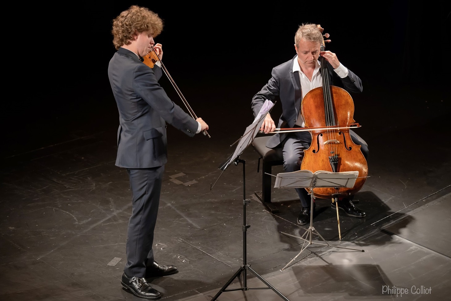 Marc Coppey perfectly embodies that magical blend of unwavering dedication and a love of sharing, both artistic and human, that we cherish so much. This immense cellist, " overflowing with jubilant vitality " (Télérama), is accompanied here by his son Emmanuel, a young virtuoso violinist and rising star of the French music scene. They share an impeccable style, audacity, and instrumental prowess that take them to great heights. A truly beautiful duo!